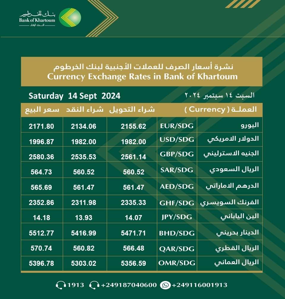 بنك الخرطوم يعلن أسعار العملات الأجنبية مقابل الجنيه السوداني اليوم السبت أسعار العملاتاقتصاد بواسطة الاحداث نيوز في سبتمبر 14, 2024 479 الدولار الامريكي أعلن بنك الخرطوم عن أسعار العملات الأجنبية مقابل الجنيه السوداني اليوم السبت 14 سبتمبر 2024م المزيد من المشاركات تعرف على طريقة فتح حساب أونلاين في بنك النيل… فبراير 14, 2026 تحسن ملحوظ للجنيه السوداني مقابل الجنيه المصري فبراير 13, 2026 أسعار الصرف في السودانالدولاربنك الخرطومبنكك 479 شارك