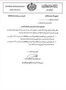وأوضح أن قرار مجلس السيادة الانتقالي للمؤسسات الحكومية والخاصة بعدم استلام أي مدفوعات نقدية وأن تستلم مدفوعاتها عبر وسائل الدفع الإلكتروني والمصرفي، داعيا المواطن لانتهاز الفرصة الراهنة في الإسراع بامتلاك الحساب المصرفي والتطبيق لأغراض الاستبدال والأغراض الأخرى وعلى رأسها التمكن من دفع الرسوم والمستحقات في مختلف معاملات الحكومة والمؤسسات العامة والخاصة.