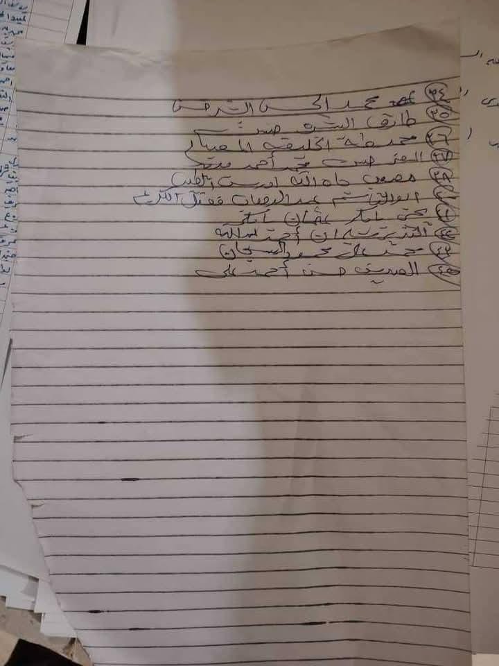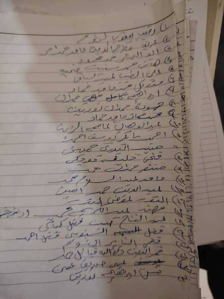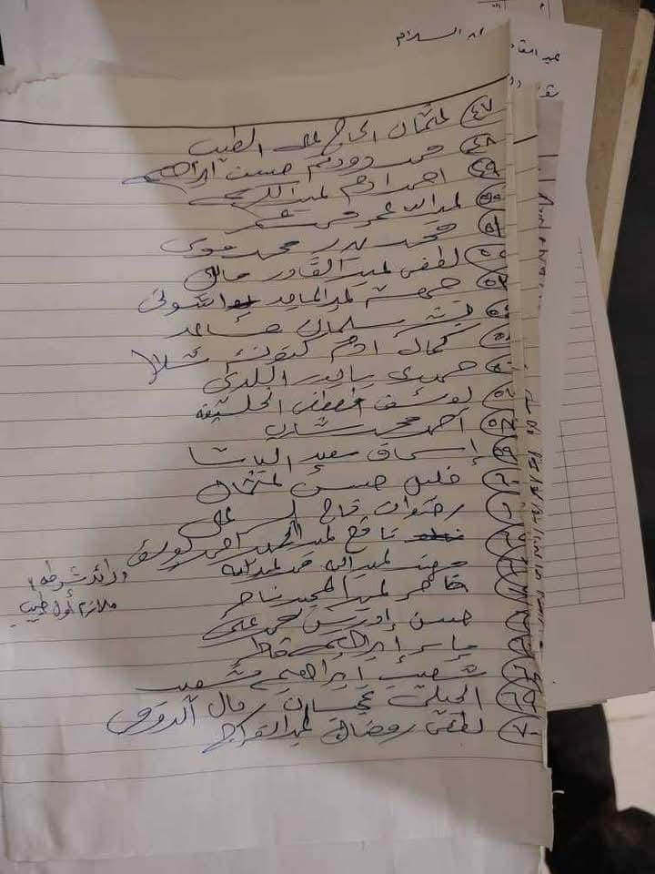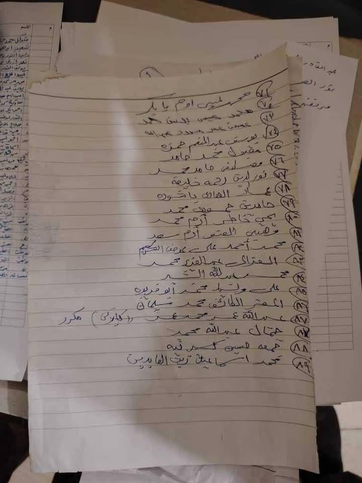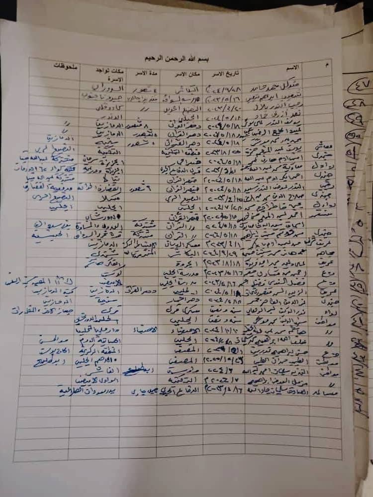 وقالت مصادر ميدانية إن بعض الأسرى تم اغتيالهم بينما توفي آخرون نتيجة للتعذيب. شملت القائمة 45 عسكرياً و13 مدنياً.