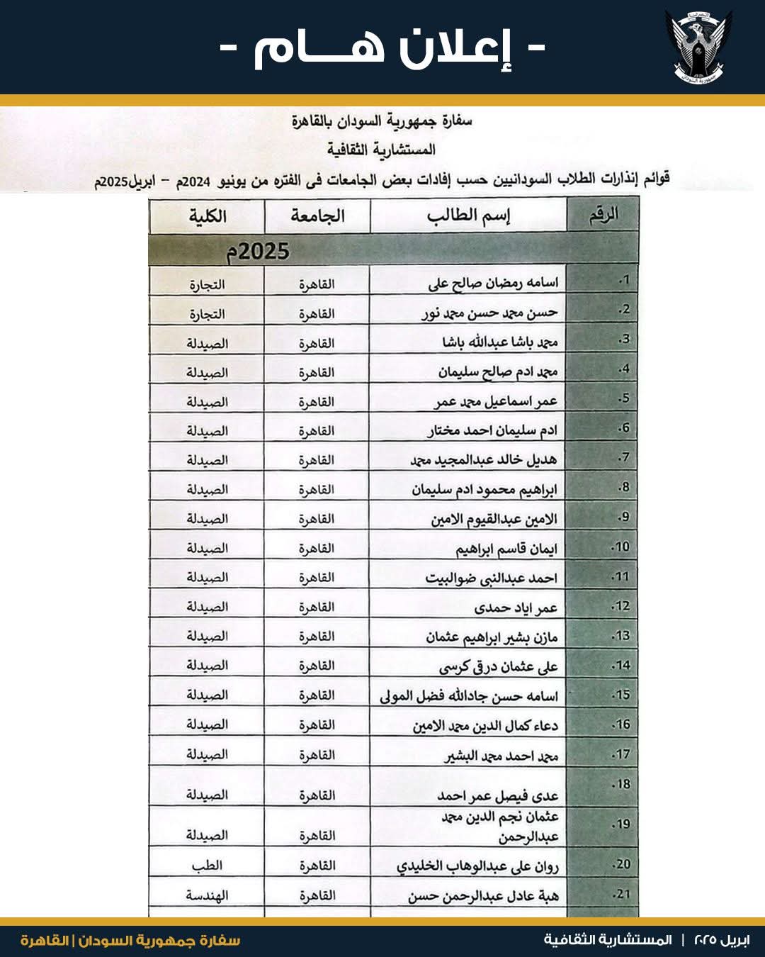 متابعات _ الأحداث نيوز _ تنويه عاجل من سفارة السودان بالقاهرة