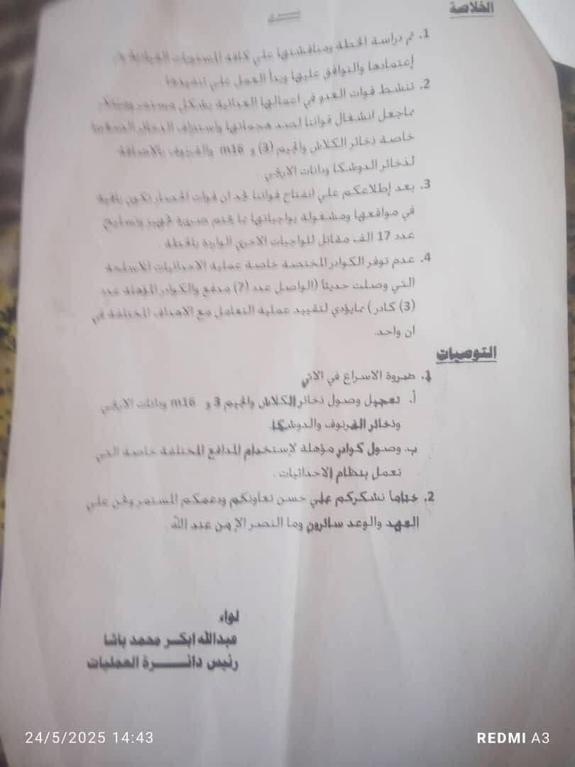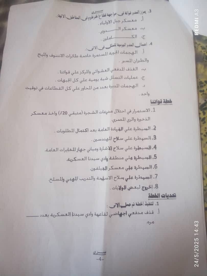 متابعات _ الأحداث نيوز _ عثرت قوات الجيش السوداني، عقب سيطرتها على منطقة الصالحة ومعسكر جهاز المخابرات العامة (سابقًا) جنوب أم درمان، على وثائق تُفصّل خطة متكاملة وضعتها المليشيا لإحكام السيطرة الكاملة على العاصمة الخرطوم في أغسطس 2023م.