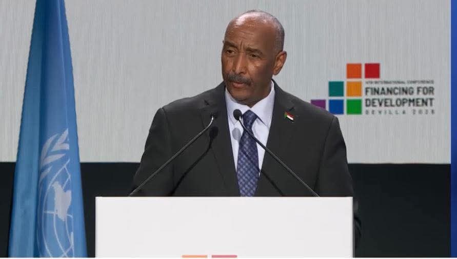وقال البرهان، في كلمته أمام المؤتمر الدولي الرابع لتمويل التنمية المنعقد بمدينة إشبيلية الإسبانية، إن السودان لا يطلب تعاطفاً أو مساعدات مؤقتة، بل يطالب بدعم مستدام قائم على الإنصاف والعدالة، يمكّنه من النهوض والوفاء بالتزاماته التنموية.