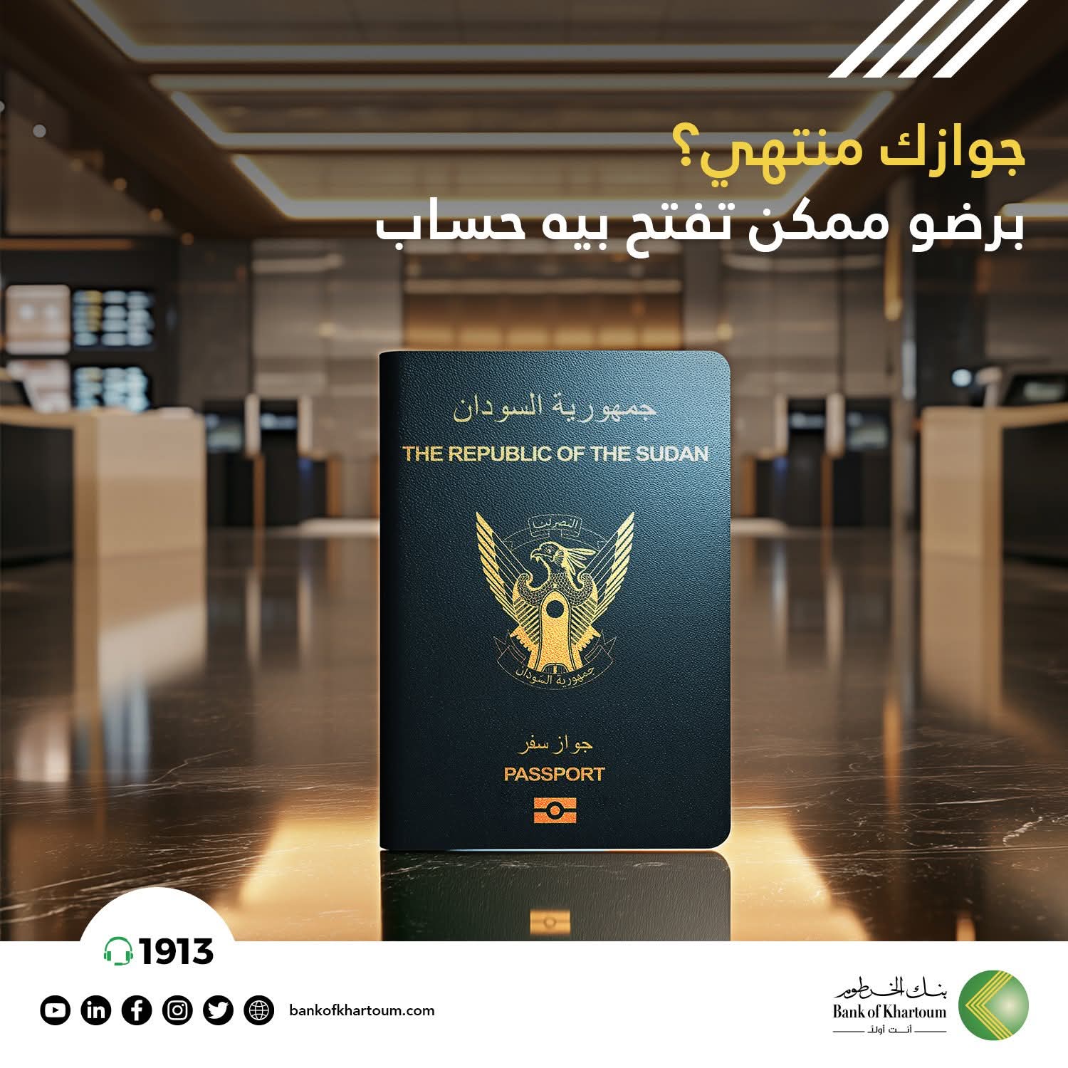 متابعات – الاحداث نيوز – في خطوة تهدف إلى تسهيل الإجراءات المصرفية وتوسيع نطاق الخدمات، أعلن بنك الخرطوم عن إتاحة خدمة فتح الحساب البنكي عبر الإنترنت باستخدام جواز سفر منتهي الصلاحية.