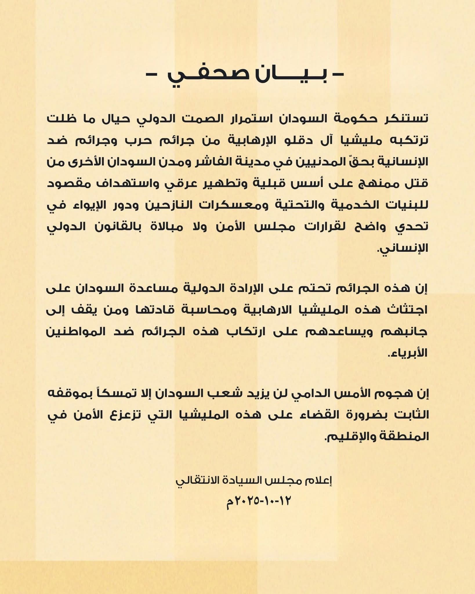 بيان عاجل من مجلس السيادة الانتقالي السوداني