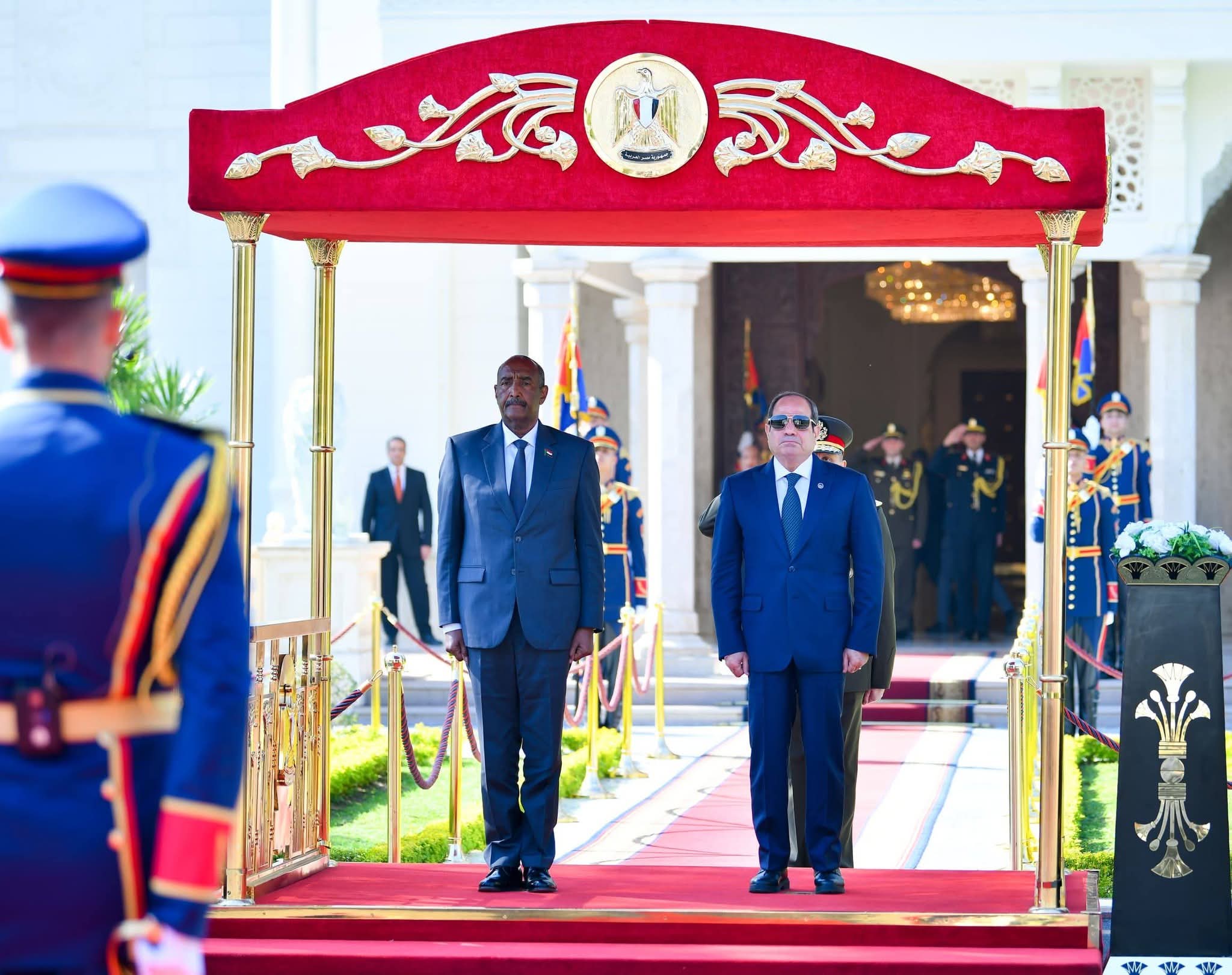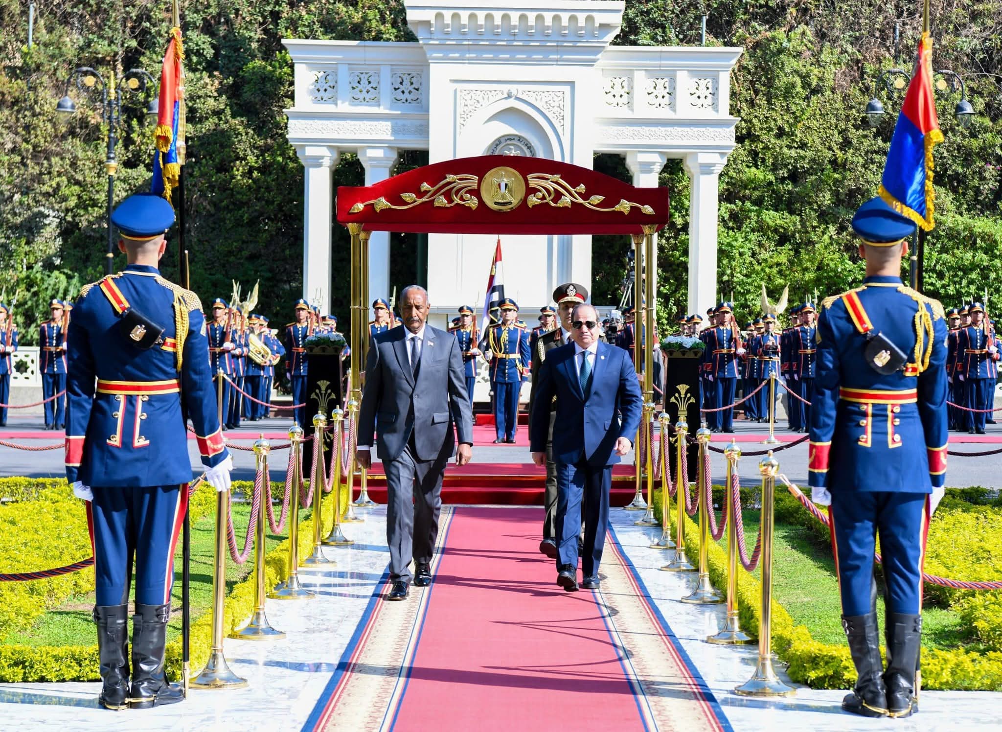 وأقام رئيس جمهورية مصر العربية، عبدالفتاح السيسي، اليوم مراسم استقبال رسمية بقصر الاتحادية على شرف زيارة رئيس مجلس السيادة الانتقالي السوداني، الفريق أول الركن عبدالفتاح البرهان، إلى مصر.